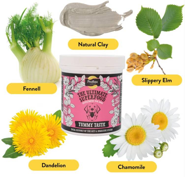 NB! Proflax Tummy Tastic peetakse ohutuks kasutada koos ravimitega, kuid kui teil on kahtlusi, konsulteerige oma loomaarstiga. Andke vähemalt 2 tundi enne või pärast ravimite manustamist, kuna libe jalakas võib mõjutada teatud tüüpi ettenähtud ravimite imendumist.